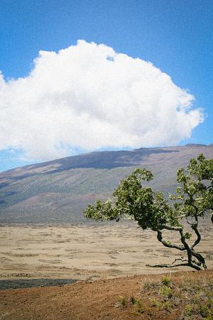 a koa tree, a cloud, and mauna kea. digital photography. shot on hawaiʻi island.