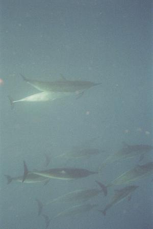 a pod of sleeping hawaiian spinner dolphins. 35mm underwater film. shot on hawaiʻi island.
