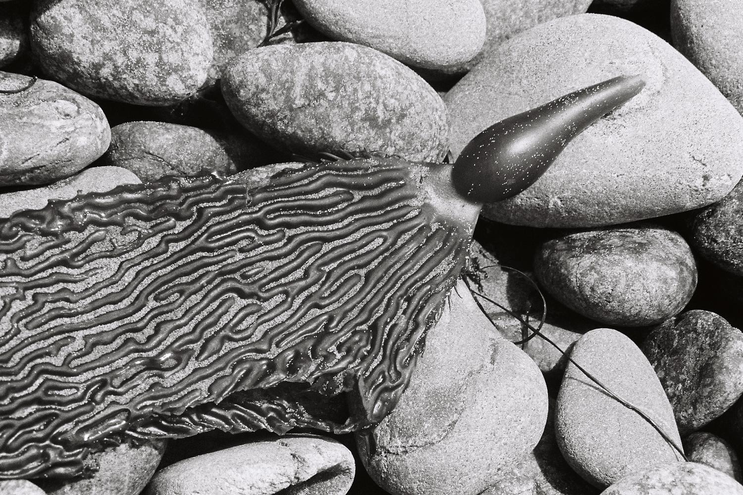 kelp on a rocky beach. 35 mm film. shot in big sur, california.